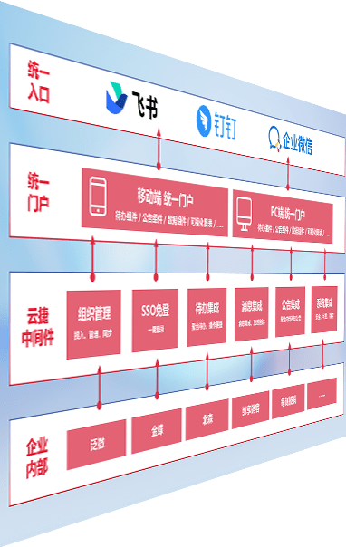 对协作平台提供支持服务,,支持企业应用与协作平台对接,,,,包含组织同步、、、消息集成、、、待办集成等。。。支持目前主流的协作平台:钉钉、、企微和飞书。。。。